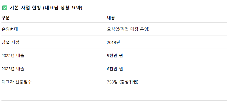 → “주방 장비 교체, 인테리어 보수, 배달 시스템 구축, 마케팅 강화” 등 구체적 항목 제시.