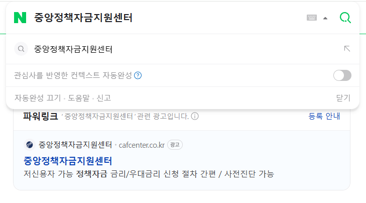 네이버 검색에 중앙정책자금지원센터를 검색해주세요