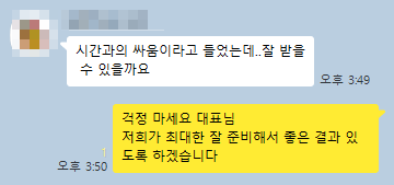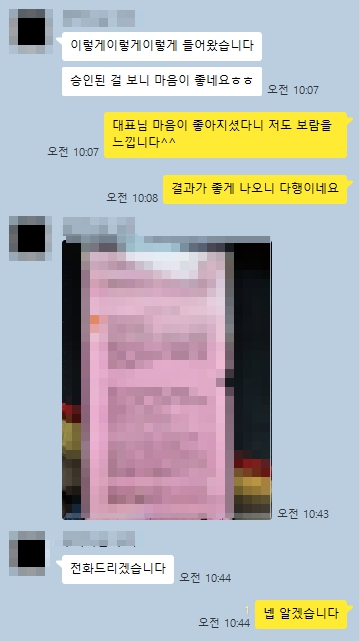 초조해하셨던 대표님은 승인 결과를 보자마자 기분이 좋아지셔서, 보는 저희도 일한 보람이 났습니다.