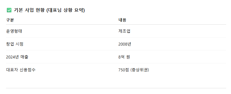 2008년도에 창업을 하신 기업이라 정책자금에서 애로사항이 있었고, 코로나 이후 경기로 인해 매출이 급감하신 상태였습니다.