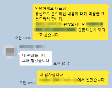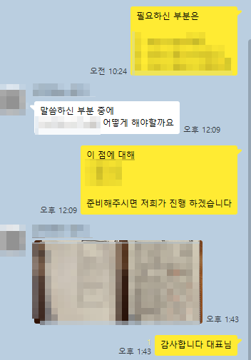 유선 상담 후 대면 미팅을 통해 서류 작업을 진행하며 필요한 부분은 대표님과 실시간으로 소통하며 진행 하였습니다.